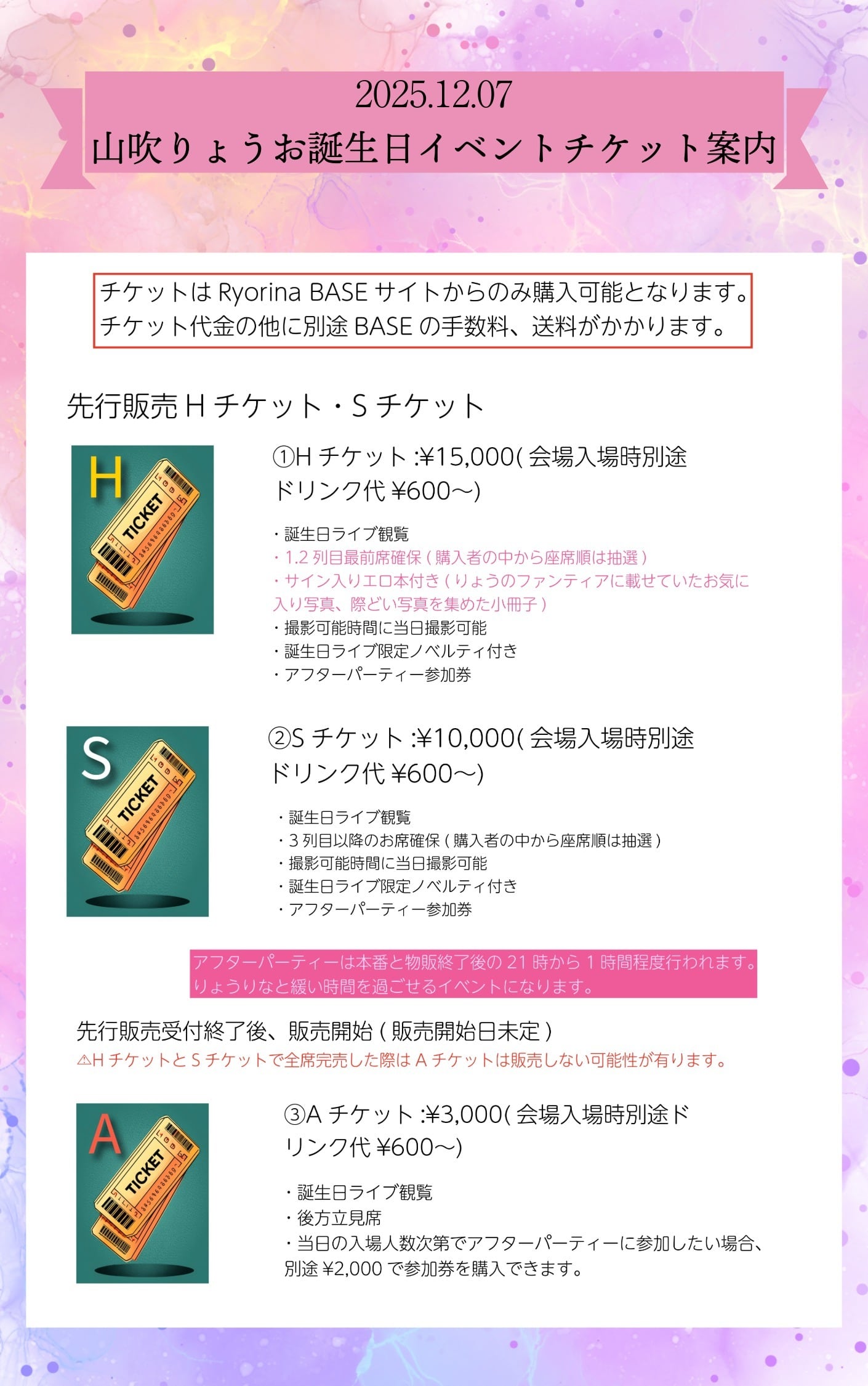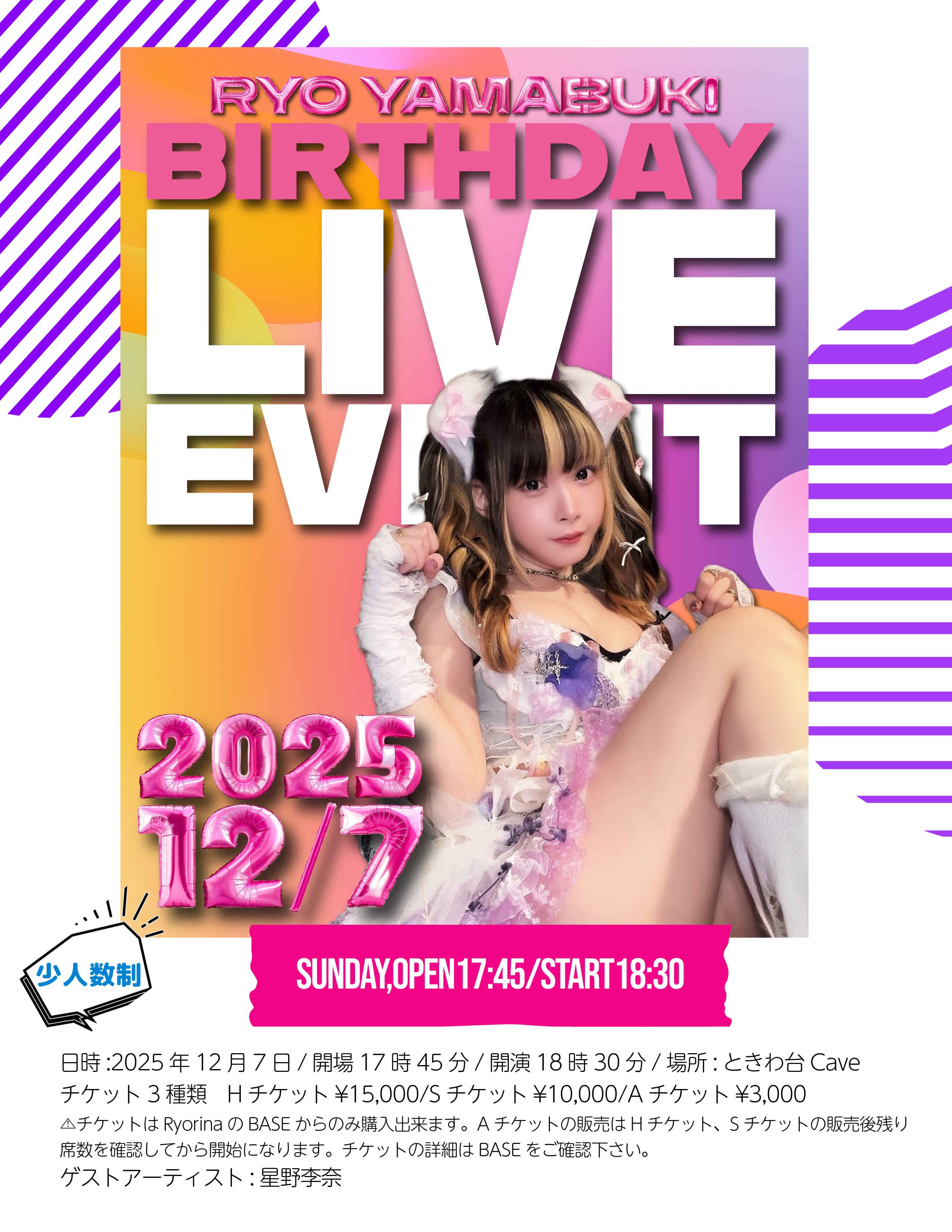 山吹りょうちゃんのお誕生日ライブHチケットになります。